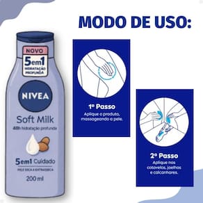 Com a NIVEA Loção Deo-Hidratante Soft Milk, você cuida da sua pele com o carinho e a confiança de uma marca com mais de 100 anos de tradição em hidratação.