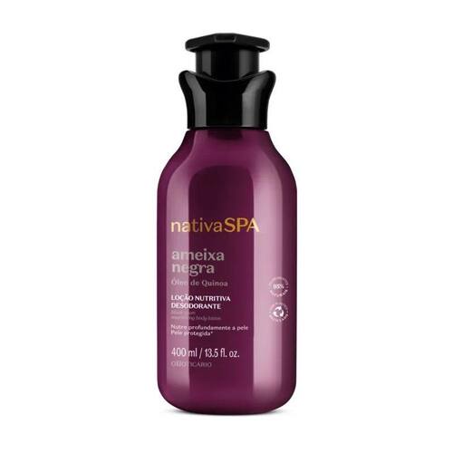 Loção Hidratante Desodorante Corporal Nativa Spa Ameixa Negra 400ml Como símbolo de sensualidade e intensidade, a Loção Hidratante Desodorante Corporal Nativa Spa Ameixa Negra é um estímulo para a pele. É a união de hidratação profunda com um delicioso aroma floral orienta amadeirado.