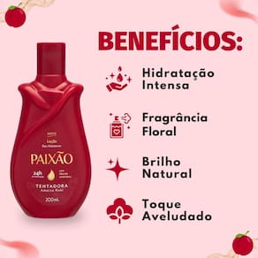 Descubra a irresistível Loção Hidratante Corporal Paixão Tentadora Ameixa Rubi 200ml, desenvolvida para proporcionar uma experiência sensorial única e hidratação profunda. Com a fragrância envolvente de Ameixa Rubi, esta loção da marca PAIXÃO é ideal para quem busca uma pele macia, perfumada e irresistivelmente sedosa, transformando o cuidado diário em um momento de puro prazer. Sinta a tentação em cada toque, revelando a beleza natural da sua pele. Ideal para mulheres que desejam realçar sua beleza natural e desfrutar de momentos de puro prazer e cuidado pessoal.