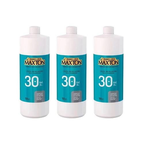 Loção reveladora maxton ox 30 vol 900ml - kit com 3un Descrição A loção reveladora maxton ox de 30 volumes em embalagem de 900ml é formulada para proporcionar uma revelação intensa e eficaz da cor durante o processo de coloração capilar. Com uma concentração mais alta de peróxido de hidrogênio, esta loção reveladora ajuda a abrir as cutículas dos fios de maneira controlada, permitindo uma melhor dos pigmentos de cor. Indicada para colorações que necessitam de um clareamento mais significativo, proporciona resultados vibrantes e duradouros. Modo de uso Misture a loção reveladora maxton ox de 30 volumes na proporção recomendada pela coloração escolhida. Aplique uniformemente nos cabelos secos e siga as instruções específicas do produto de coloração. Deixe agir pelo tempo determinado pelo fabricante, enxágue abundantemente e finalize com um condicionador adequado para selar os fios. Realize sempre o teste de mecha antes da aplicação completa para verificar a compatibilidade e evitar possíveis reações alérgicas. Marca: Não Informado