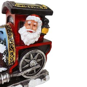 - Modelo: Locomotiva Natalina - Material: Resina, Metal, Polipropileno e LED - Peso: 1,130 kg - Tamanho: 27cm x 12cm x 18 cm - Funcionamento: 3 pilhas tipo AA não inclusas - Cena natalina com LED - Canções de Natal - Decoração natalina Ean: 7908281336739