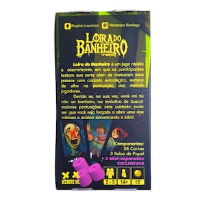 Loira do Banheiro é um jogo divertido, rápido e aterrorizante em que os participantes testam sua sorte além de poder tramar seus passos com cuidado estratégico, sempre de olho nos pontos dos outros jogadores. Ilustrado por um dos mais renomados artistas de jogos de tabuleiro do mundo.