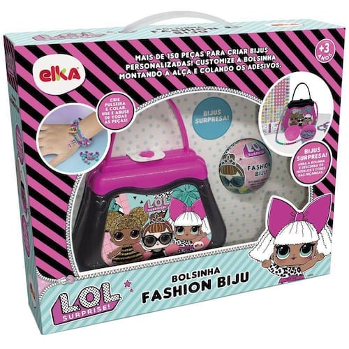 Bolsinha fashion biju da lol surprise é ideal para meninas acima de 3 anos. Bolsinha da lol que acompanha mais de 150 peças para criar bijus personalizadas customize a bolsinha montando a alça e colando os adesivos abra a bolinha e descubra os modelos e cores das miçangas. Crie pulseira e colar, use e abuse de todas as peças