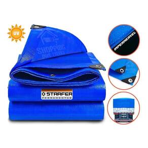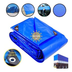 Lona 75g/m em 100% polietileno medida 5x3 azul com ilhoses metálicas a cada 1 metro.