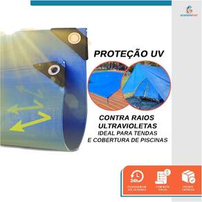 Lona impermeável é ideal para cobertura protetora para: festas, barcos, caçambas, piscinas, construções, caminhões, etc. Tenda, forro ou proteção lateral para piqueniques, acampamentos e praias. Indicado para agricultura, construção civil, náutica, camping, pesca, recreação, utilidades domésticas, entre outros.CARACTERÍSTICAS TÉCNICAS:Material: Alta densidade 60% polietileno (HDPE) e 40% baixa densidade (LDPE)Medidas: 8m x 4mGramatura total: 75g/m2100% Impermeável ResistenteCor: AzulPossui ilhós a cada metro, fio por dentro da bainhaCantos e lados reforçados para maior durabilidadeProteção UV.Marca: StarferRef.: 8720606Obs: prenda as cordas e ganchos no máximo de ilhoses possíveis, assim o peso e a tensão serão divididos por igual, evitando o estouro e rasgo da lona.