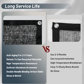 O pano de proteção solar multiuso Cool Area é feito de polietileno de alta densidade estabilizado 100% UV, o pano de sombra de jardim funciona perfeitamente para reduzir o calor do sol e os raios para proteger suas plantas e vegetais. O pano de sombra de alumínio é leve e a durabilidade o tornam uma escolha superior para todos os tipos de aplicações privadas de sombra. Crie sombra em qualquer lugar que você quiser! Cor preta usada para estufas, cabanas, velas de sol, pátios, toldos, coberturas. A rede de bloqueio de sol externa para varanda pode fornecer sombra do sol enquanto permite que a brisa fresca entre pela malha. Também pode ser utilizado para muitas finalidades diferentes, como barreiras de locais, cercas de privacidade, canis, capas de caminhão basculante, gabinetes de dossel, coberturas de pátio e muitos outros usos semelhantes Especificações: Material da malha: 100% polietileno de alta densidade estabilizado por UV. Taxa de sombra: 55% Forma da rede: quadrada Cor: preta Função: use para estufas, cobertura de plantas (flores, frutas), bloqueia o sol, com calor, umidade, à prova de geada, resfriamento e assim por diante. Vida útil: 5 anos, sob condições climáticas normais e uso Tipo: Malha de urdidura - ?Taxa de sombreamento de 55%?Feito de material de tecido 100% novo de polietileno de alta densidade (HDPE), tem uma taxa de sombreamento de até 55% pode evitar a luz solar direta enquanto permite a livre circulação de ar. - ?2-3 anos de vida útil?Recuse-se a usar materiais reciclados, resistentes a rasgos, resistência a altas temperaturas, brilhante, seguro e inodoro, leve e durável. - ?Fácil de instalar?Conteúdo da embalagem: 1 peça de cobertura, média de 50 cm para uma fivela de alumínio, você pode fixar o protetor solar em qualquer lugar com fecho de correr ou corda, fácil de pendurar. - ?Amplamente utilizada?A lona de sombra é amplamente utilizada em ambientes externos, copa, quintal, deck, gazebo, pérgola, varanda, piscina, caminhão basculante, estufa, jardim, flores, aviário, plantas suculentas, tomates, celeiro, canil, galinheiro de gado, etc. - ?Projetado para você?Você pode usar nossa rede de sombreamento para fornecer áreas frescas e confortáveis no verão, é uma ótima solução para sombreamento, atende às suas diferentes necessidades.
