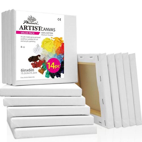 HISTÓRICO DA MARCA Desde 1995, a PHOENIX se orgulha de fabricar materiais de arte com detalhes inspirados e oferece soluções de arte premium para milhões de pessoas em todo o mundo. Conseguimos nos especializar em pesquisar e desenvolver os melhores materiais de pintura para nossos clientes. Você está planejando pintar hoje? Obtenha uma tela esticada perfeita da PHOENIX para pintar sua imagem Características: Tela 100% algodão – A tela esticada 100% algodão PHOENIX é esticada à mão e grampeada de volta em uma moldura de madeira de pinheiro para criar uma superfície elástica e vibrante na qual pintar. GESSO SEM ÁCIDO PRIMED - Primado triplo com 227 g, esta tela de pintura está pronta para pintar para todas as suas necessidades de arte e artesanato. Adequada para todos os meios de pintura, especialmente óleos ou acrílicos. Uso multiuso – Nossa tela esticada é versátil, pois pode ser exibida com ou sem moldura. Ideal para decoração de casa, projetos de artesanato, colagens e outros eventos de pintura. Uma excelente escolha para artistas, designers de interiores, estudantes, escola de arte e muito mais! A embalagem inclui: Tela esticada: 15 cm x 15 cm x 14 - Lona de algodão pré-esticada – Feita de algodão de fibra longa com textura natural, maior força de tingimento e excelente sensação de toque. A superfície de algodão da tela de pintura não encolhe ou afunda e é estável em todas as dimensões durante e após a pintura. A tela de algodão mantém suas tintas bem e mantém as tintas com seus tons naturais e brilho o tempo todo. - Barras esticadoras de madeira de pinheiro – Tamanho padrão para facilitar o enquadramento e pendurar na parede. Estruturas de madeira com encaixe e conexão de espiga garantem que as armações sejam firmes e resistentes. As telas são esticadas firmemente nas barras e grampeadas para criar bordas limpas. A barra esticadora com ângulos redondos suaves evita que a tela se rasgue. Sem deformação, são resistentes o suficiente para despejar impasto e acrílico. - Gesso triplo – A tela de grão médio preparada com gesso mantém a superfície da pintura pronta para pintar, colar, desenhar, esboçar e ilustrar com excelente força de tingimento e não desmorona ou racha. Adequado para todos os tipos de materiais de pintura, por exemplo, óleo, acrílico, aquarela, guache, pastéis e têmpera. Funciona especialmente bem para cores de óleo e acrílico para manter suas pinturas brilhantes e brilhantes. - Embalado individualmente – Todas as outras telas são embaladas a vácuo. Leve e fácil de armazenar e transportar. Aplicado para criar enfeites de festival/festa, centros de mesa, artesanato artístico, miniaturas, pinturas temáticas, cartões de mesa, projetos de hobby e outras pinturas decorativas. Perfeito para criar inspiração de mesa, biblioteca visual temática, colagem em estilo clipe, cavalete de mesa e exibição de prateleira. - Especificações – Tamanho da tela: 15 x 15 cm/pacote com 14. Peso sem primer da superfície de algodão - 113 g e peso preparado - 226 g. Ideal para estudantes, adultos, iniciantes, bem como artistas e profissionais com fins de prática de pintura. Seguro com certificações verificadas AP e CE.