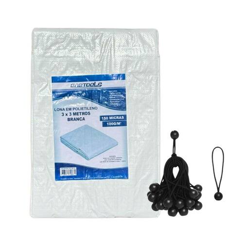 Lona Reforçada BRANCA 3X3 150 micras + Elásticos Fixadores O kit contém: 1 Lona Reforçada BRANCA 3X3 metros 100grs 150 micras ON108 Onetools 6 unidades do Elástico Fixador De Lona 9 Pol - Somos a Tudo de Ferramentas, sua parceira de confiança desde 2013 no ramo do ecommerce Compre com quem entende do assunto e garanta produtos de qualidade para suas necessidades. Nossa empresa está presente em diversos marketplaces, facilitando sua compra e garantindo a entrega rápida dos pedidos. Lona 3X3 Metros Em Polietileno BRANCA Onetools - Produzida em polietileno 150 Micras 100 grs - Possui ilhoses de alumínio a cada 1 metro e cantos reforçados - Todas as 4 bordas soldadas com corda PP na bainha; - Cor: BRANCA - Dimensões: 3X3 metros - Ideal para: Feiras livres, Acampamento, Pesca, Construção civil, Agricultura, Indústria - Marca: Onetools Marca: Não Informado