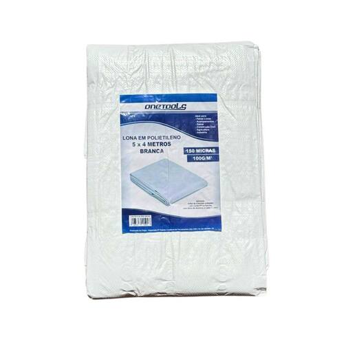 Lona 5X4 Metros Em Polietileno BRANCA Onetools - Produzida em polietileno 150 Micras 100 grs - Possui ilhoses de alumínio a cada 1 metro e cantos reforçados - Todas as 4 bordas soldadas com corda PP na bainha; - Cor: BRANCA - Dimensões: 5X4 metros - Ideal para: Feiras livres, Acampamento, Pesca, Construção civil, Agricultura, Indústria