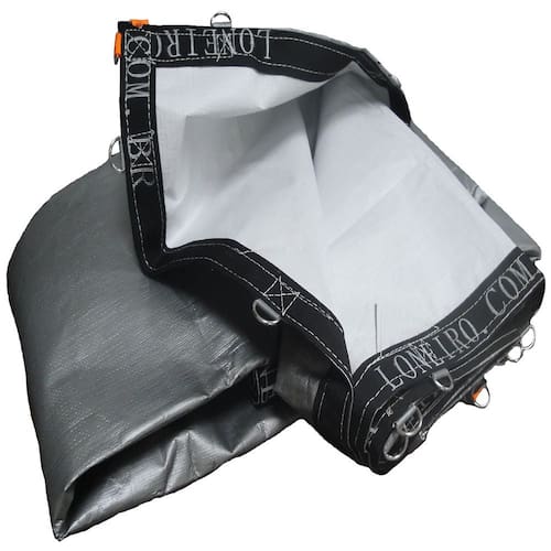 A lona loneiro super pppe 500 micras é confeccionada com tecido de fios sintéticos de plástico de polipropileno PP de alta resistência, tratamento ultravioleta para uma maior vida útil, facilitando na limpeza e conservação do produto evitanto mofar. Possui tela 100% fechada com reforço de dupla laminação com resina de polietileno PE em ambols os lados da poly-lona super. Cor azul de um lado e preta do outro. Tecido impermeável com 300 gr/m2 e espessura de 500 micras. Temperatura de trabalho de até 100graus Celsius. Tecido com bainhas e emendas vulcanizadas 100% à ar quente, evitando infiltrações d eumidade. Acabamento da bainha com cinta de segurança dupla e costura com largura de 5cm na cor preta em todo o contorno da polylona super.