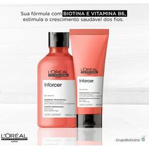 Contém: L'oréal Professionnel Inforcer Serie Expert - Shampoo 300ml: funciona como um suplemento capilar de força com prevenção a quebra. Deixa o cabelo mais forte, saudável, com brilho e maciez, pois estimula o metabolismo de proteínas para o crescimento dos fios de cabelo já existentes.