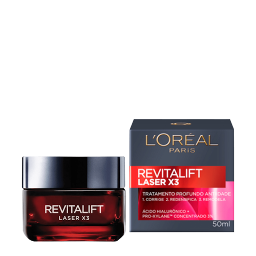 O Creme L'Oréal Revitalift Laser X3 consegue redensificar a pele, combatendo a flacidez que aparece a partir dos 40 anos. Com poderosa fórmula, enriquecida com PRO-XYLANE™ e Ácido Hialurônico, sua fórmula reforça as fibras de sustentação e estimula a produção dos componentes naturais da pele, para uma pele redensificada.