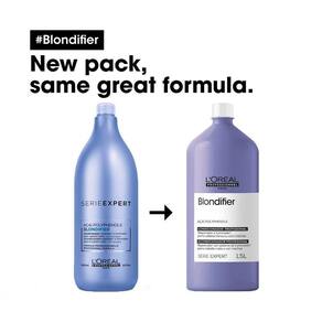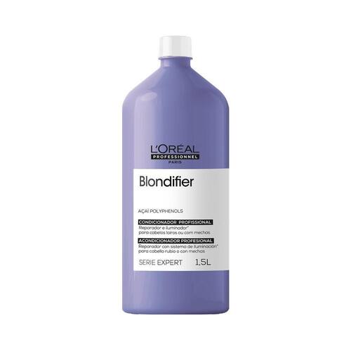 O condicionador blondifier de l'oréal professionnel foi feito para restaurar e iluminar os fios, proporcionando maciez e nutrição. Além disso, um dos seus principais ingredientes é um importante antioxidante responsável por prevenir a oxidação dos cabelos loiros ou descoloridos, sensíveis às exposições climáticas, poluição e outros fatores externos. Modo de uso: 1. Aplicar no cabelo limpo e úmido;2. Passe uma quantidade suficiente no comprimento e pontas, sem aplicar na raiz,3. Massageie delicadamente as mechas, deixe agir um pouco;4. Finalize enxaguando. Resultado: neutralização de tons amarelados, saúde aos fios,iluminação e neutralização Itens inclusos: 1 l'oreal professionnel serie expert blondifier condicionador 1500 ml.