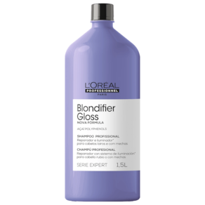Shampoo para loiros, descoloridos e com mechas. L’Oréal Professionnel Blondifier Gloss restaura e ilumina os fios, proporcionando maciez e nutrição.