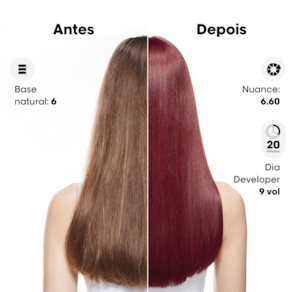 Mistura: em um recipiente não metálico, misture 60ml de Dia Color + 90ml de Diactivateur (6 Vol. para cor suave; 9 Vol. para cor média; 15 Vol para cor intensa). Em seguida, utilize luvas e aplique a mistura no cabelo seco.