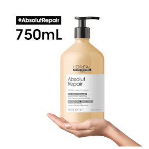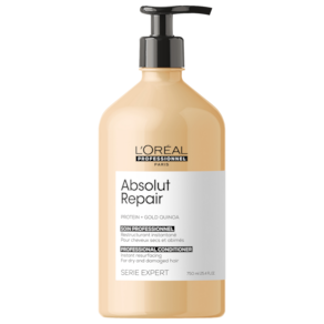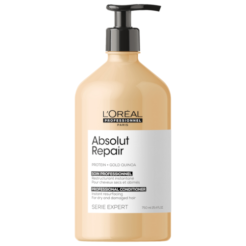Condicionador para cabelos danificados. L'Oréal Professionnel Serie Expert Absolut Repair Gold Quinoa + Protein traz ativos que ajudam restaurar a superfície dos fios.