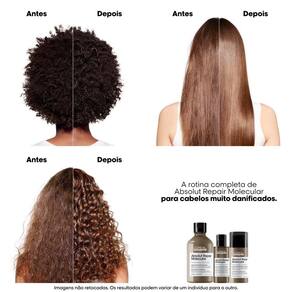 descoberta científica - reparação molecular quando o cabelo está danificado, sua estrutura molecular, composta por peptídeos, fica comprometida. O cabelo quebra, fica elástico e sem movimento. A maioria dos peptídeos é grande demais para ser reinjetada na fibra, tornando os danos quase irreversíveis. Descoberta científica - absolut repair molecular. Repare 2 anos de danos em um uso. Pela primeira vez, l'oréal advanced research conseguiu decompor peptídeos, injetar seus componentes separadamente na fibra. Uma vez dentro, eles reconstroem a estrutura molecular do cabelo. tecnologia inovadora mais do que o reparo superficial, é o reparo molecular interno. Este sérum reconstrutor com exnágue exclusivo é concentrado com 2% de ligantes peptídicos + 5 aminoácidos, que reconstroem a estrutura molecular do cabelo Para restaurar sua força, elasticidade e movimento. profunda inspirado em séruns ultra potentes para a pele, ele vai além das máscaras reparadoras regulares e penetra profundamente na fibra para reconstruir sua estrutura molecular Sem revestimento superficial. transformação instantânea instantaneamente, o cabelo é visivelmente transformado: o brilho e a maciez são drasticamente melhorados. fórmula profissional sua textura semelhante a um sérum é imediatamente absorvida pela fibra e proporciona reparo molecular Sem pesar. recomendado para todos os cabelos danificados para todas as texturas de cabelos danificados, sejam coloridos, descoloridos ou naturais. co-desenvolvido com profissionais de reparação família foi codesenvolvida com 3 especialistas em reparação: - adina pignatare adinapignatare dos eua - mike julliard loungecut da frança - bárbara rabelo barbararabelo do brasil. Teste instrumental na estrutura macromolecular da fibra após a aplicação do shampoo + rinse off sérum + leave in. Aminoácidos & ligantes peptídicos. Teste instrumental após 15 aplicações de shampoo + rinse-off serum + leave-in. Teste de consumidor após 2 semanas de uso de shampoo + rinse off sérum +leave-in. Teste instrumental após de shampoo + rinse-off sérum. Marca: Não Informado