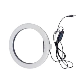 Lote 10 Ring Light Led Selfie Iluminadora Make Foto Luz 26cm Ring LED Light Selfie Iluminadora Maquiagem Luz Quer deixar suas fotos com uma iluminação incrivel e única O Iluminador de LED circular Ring Light RL permite obter uma luz suave e sem sombras devido ao seu formato circular. A Luz obtida por esse produto produz resultados espetaculares em retratos e filmagens em que deseja-se destacar a pele, maquiagem, corte de cabelo e etc. É possível ajustar a intensidade da luz girando o botão. Se preferir luz mais alaranjada, basta encaixar o filtro que acompanha o produto para simular uma temperatura de cor de 3200K.