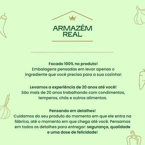 Seja bem vindo a A equipe armazém real está no ramo alimentício há mais de 25 anos garantindo confiança e satisfação. Nosso principal foco é garantir a qualidade e desempenho de nossos produtos, e além de levarmos até você, produzimos aqui a maior parte deles. Com isso, temos um controle de qualidade excelente