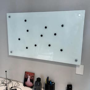 Nossa lousa de vidro é de ótima qualidade, fabricada em vidro temperado, com película de segurança e bordas e cantos “matados”, ou seja, não são pontiagudos, sendo um produto de extrema segurança, tanto para seu home-office, quanto para o quarto de seus filhos.