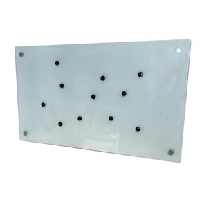Essa é uma lousa de vidro magnética, isso mesmo, você fixa os imãs no vidro. Portanto, além de escrever e desenhar, você pode fixar contas à pagar, recados, cartas, fotos, etc no seu quadro.
