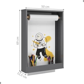 Feito em MDF . Rolo de papel 15 metros 42 cm com espaço de 45 cm para desenho, Acompanha 2 réguas de encaixe para fixação parede