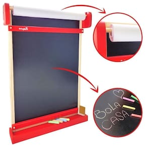 A Lousa Infantil de Parede modelo 085 da Brinqmutti, acompanha 1 quadro negro com detalhes na cor vermelha, 1 bobina de papel com 10 metros, 4 gizes coloridos, 1 apagador e 2 parafusos com buchas para fixação.Esta lousa para criança, é um dos melhores brinquedos que se pode dar a uma criança, pois é educativo, e proporciona a ela um enorme número de aprendizagens, porque une funções como quadro negro e rolo de papel.O quadro de incentivo infantil é recomendado para crianças a partir de 3 anos de idade e vem com alguns acessórios como apagador, giz colorido, rolo de papel além de uma bandeja para acomodar todo material didático dos pequenos.As crianças podem usar tanto o quadro negro com giz como o papel, na produção de seus desenhos e atividades diárias.Trata-se de uma lousa infantil quadro negro de parede, o que dá bastante espaço para que o pequeno cultive a sua criatividade Com tudo isso, as crianças ficarão ocupadas por muito tempo, pois têm a sua disposição quadro de giz e quadro com papel na mesma lousinha, podendo dar margem a sua criatividade tanto com o giz quanto com papel, o que é muito importante para o desenvolvimento do lado direito do cérebro, assim como para a coordenação motora delas, pensando em atividades futuras, como escrever e digitar.Este brinquedo educativo é feito todo em madeira, e é indicado para crianças a partir de 3 anos de idade, não emite som nem luz, razão pela qual dispensa o uso de pilhas e baterias, e as Imagens são meramente ilustrativas.Medidas Aproximadas:Lousa Quadro Negro de Parede: 64cm de altura x 48,5cm de comprimento x 9cm de largura.Peso Aproximado: 2,800 kgConteúdo da Embalagem: 1 Lousa Infantil De Parede, 4 Gizes, 2 Parafusos Com Bucha, 1 Bobina De Pape E 1 Apagador.Certificado de Segurança: INMETRO CE-BRI/OCP-N 0069-01 NM 300/2002 OCP 0133