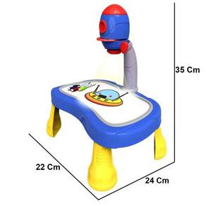 Linda mesinha com projetor de desenhos. Com projetor acoplado, acompanha 3 discos de desenhos para projetar as ilustrações. Acompanha também papel e canetinhas coloridas com apagador acoplado para a brincadeira ficar completa. Possui mecanismo liga/desliga e controle para ajustar a nitidez da projeção. Com esta mesa divertida, os pequenos podem soltar a imaginação e desenvolver habilidades que contribuem para a sua formação e criatividade.