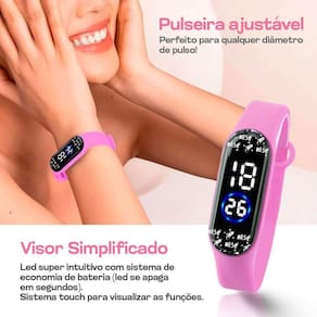 1 Relógio Infantil Rosa Digital em Forma de Bracelete Orizom Kids com Temática da Barbie: Este relógio fofo em forma de bracelete é perfeito para manter o tempo com estilo. Apresenta a temática da Barbie e é ideal para aprender a ler as horas.