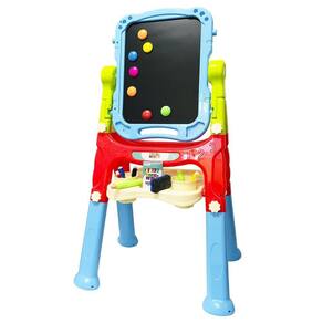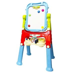 esta lousa para criança, da multikids, é ainda mais especial porque une diversas funcionalidades em um só produto: é um quadro negro e quadro branco magnético, se constituindo em uma lousa mágica grande. O quadro de incentivo infantil pode ser utilizado por crianças a partir de 3 anos e vem com alguns acessórios como apagador, 5 canetinhas com apagador e imã, 1 caixa com 12 unidades de giz colorido além do suporte para giz que auxilia os pequenos em seus desenhos e evita-se até mesmo o contato parcial com o giz. Isso mesmo: você pode usar tanto o giz como a caneta, além de poder contar com a funcionalidade de ter um quadro magnético dos dois lados, para usar os 12 imãs coloridos que já acompanham o produto. A lousa infantil conta com uma mesa de apoio incluindo dois copos para os utensílios e vem em cores bastante alegres, entre elas o vermelho e o azul. O quadro mágico é fabricado em plástico e não emite nem luz nem som. Por isso, esta lousa magnética dispensa o uso de pilhas e/ou baterias. Trata-se de uma lousa magnética grande, o que dá bastante espaço para que o pequeno cultive a sua criatividade e, quando ficar entediado, basta girar para o outro lado e o quadro de desenho se transforma, podendo ser, por exemplo, uma lousa de giz. Esta lousa mágica e quadro infantil tem rotação 360º as crianças a amam, o que a torna uma excelente opção de presente para qualquer pequeno com mais de 3 anos