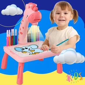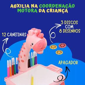 Lousa Rosa Com Projetor Mesinha Girafinha Para Crianças Pintarem