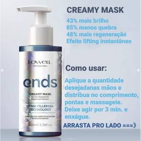 Benefícios do Creamy Mask: Máscara capilar para todos os tipos de pele. Lowell Ends cuida das pontas duplas dos fios, restaurando a maciez.