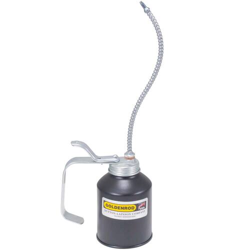 GOLDENROD (707) Bomba de óleo industrial com bico flexível – Capacidade de 355 ml - Construção de nível industrial: Construído com bases de aço duráveis com costura dupla ou desenhada para um desempenho duradouro. - Componentes de alta qualidade: Possui uma bomba de alta pressão de zinco fundido Goldenrod com um pistão de precisão para entrega confiável de óleo. - Fluxo de óleo suave: capacidade de 340 g. Alça grande banhada para uso fácil e confortável. Proporciona uma gota controlada ou fluxo de óleo. - Bico flexível e removível de 20 cm: com ponta reta permite fácil limpeza e personalização. - Acabamento durável: Acabamento em bronze de cobre revestido em pó com uma tampa superior zincada para resistência à corrosão. - Feito nos EUA.