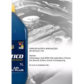 Óleo sintético Esse tipo de produto possui maior resistência a temperaturas altas e melhor desempenho em temperaturas baixas. Por isso, esses óleos são excelentes para a proteção do seu motor. Ao mesmo tempo, eles conservam o grau de viscosidade por mais tempo, com menos evaporação do que os óleos convencionais, resultando em um consumo reduzido. Finalmente, por não se degradarem ou sedimentarem rapidamente, mantêm o motor do seu veículo mais limpo. Marca: Não Informado