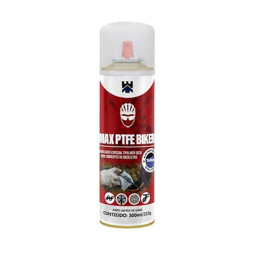 MAX PTFE BIKER Lubrificante seco indicado para a lubrificação de correntes de bicicletas. Sua formula possui rápida evaporação, formando um filme branco sintético que proporciona maior durabilidade na limpeza da corrente evitando a absorção de areias, poeiras e outros contaminantes.