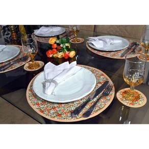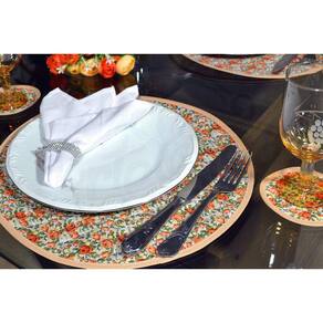 Lugar Americano e Porta Copos - Floral Laranja