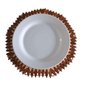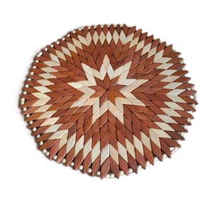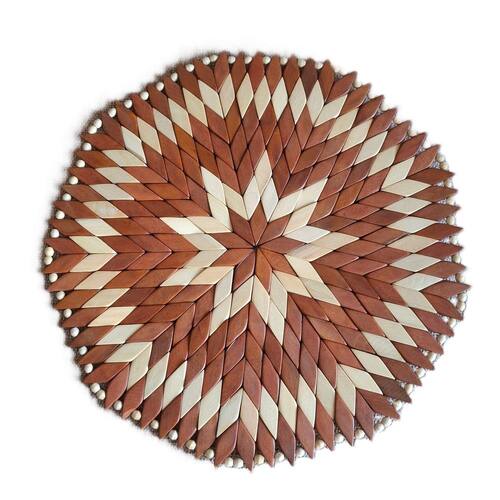 Lugar (Sousplat) americano REDONDO confeccionado em madeira, composto por peças pintadas e envernizadas, nas cor madeira clara, em formato de losângulo, com acabamento nas bordas.