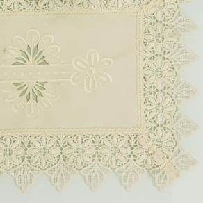 Esse produto pode ser utilizado como lugar americano, toalha de bandeja ou de várias outras formas na decoração da casa. Ele é trabalhado com renda de Guipir no mesmo tom, o que o deixa ainda mais delicado e moderno.