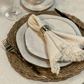 Elegância Duradoura: O acabamento artesanal realça a textura das fibras naturais, proporcionando charme e sofisticação para composições de mesa autênticas e convidativas.