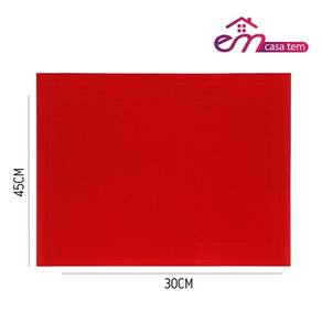 A textura em PVC confere aderência, reduzindo o risco de deslizamento de utensílios durante as refeições. A coloração vermelha, combinada ao design retangular, proporciona um toque visual na composição da mesa, adequando-se a diferentes estilos de decoração. Sua manutenção se resume à limpeza com um pano úmido, dispensando a necessidade de lavagem e facilitando a rotina.
