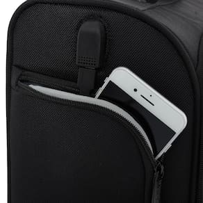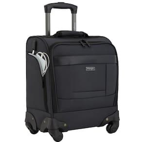 Wrangler Bagagem de mão de 43 cm com 4 rodas com porta USB lateral, Carvão, Bagagem de mão de 43 cm com 4 rodas com porta USB lateral - Carregamento inovador: a bagagem giratória de 4 rodas Wrangler vem com uma porta USB lateral conveniente, permitindo que você carregue seus dispositivos em movimento (Observação: carregador portátil não incluído) - Compacto e conveniente: projetado para caber na maioria dos assentos das companhias aéreas e atende à maioria dos regulamentos de tamanho de bagagem de mão, tornando-o perfeito para viagens sem complicações - Mobilidade sem esforço: equipado com rodas de lâmina em linha e um sistema giratório de 4 rodas, permitindo manobrabilidade suave e fácil em aeroportos e espaços lotados - Organizado e seguro: possui um interior totalmente forrado com bolsos para acessórios, um compartimento acolchoado para laptop e um bolso lateral aberto para acesso rápido a itens essenciais - Estrutura durável: feita de materiais robustos, esta bagagem garante um desempenho duradouro, proporcionando tranquilidade durante suas viagens com sua construção confiável e sistema de alça telescópica resistente do carrinho - Wrangler Bagagem de mão de 43 cm com 4 rodas com porta lateral USB e compartimento para laptop