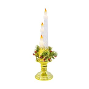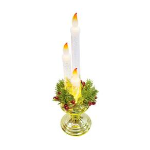 Luminária em forma de 3 velas no tema natalino com 38 cm de altura. Ao ligar, é como se as velas estivessem acesas. Material: plástico;