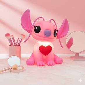 Angel roubou o coração do Stitch e o nosso também! Diretamente do universo de Lilo & Stitch, essa luminária apaixonante é o item perfeito para deixar seu ambiente mais fofo, divertido e iluminado com muito amor.
