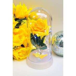 Luminária a rosa encantada amarela 20 cm base pérola frio