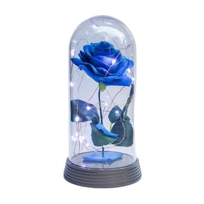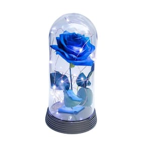 Luminária a rosa encantada azul 20 cm base ouro frio