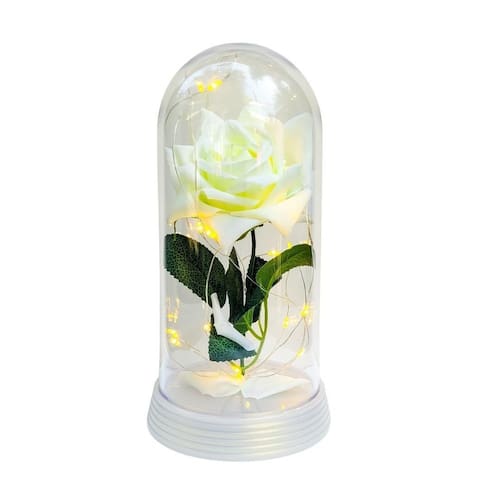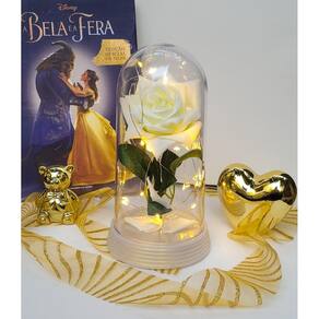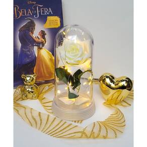 Luminária a rosa encantada branca 20 cm base pérola quente