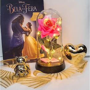 Luminária a rosa encantada rosa rosa 20 cm base ouro quente