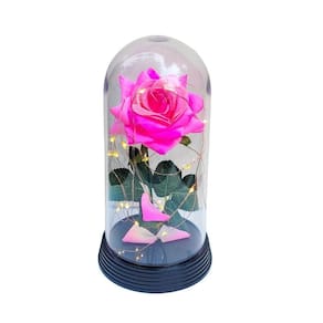Luminária a rosa encantada rosa rosa 20 cm base preto quente