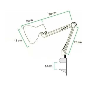 Luminaria Abaju De Mesa Com Garra G20 Articulada Branca Luminária de Mesa Articulável Com Garra Para Leitura e Estudos A Luminária de Mesa Com Garra G20 Foi e é Fabricada em Metal e os Acabamentos em PVC; Soquete em Porcelana, Designer Ideal Para Estudos e Trabalhos em Casa ou Onde Precisar, Ela é Prática, de Fácil Locomoção e Material Super Resistente. Sua Haste Articulável Possibilita Direcionamento da Lâmpada Para Onde For Necessário; Pode Ser Usada Qualquer Tipo de Lâmpada Bocal Rosca E27 Até 60W Utiliza Lâmpada Incandescente, Eletrônica ou Fluorescente Compactas Não Inlusa Especificações:Cor: BrancaGarra e Haste: Pintura EpóxiLargura: 15cmAltura: 60cmTensão da Luminária: 110vX220vSoquete: E27 de PorcelanaPotência Máxima da Lâmpada: 60WTamanho do Cabo de Ligação: 1,20mInterruptor Liga/Desliga no Próprio Cabo de LigaçãoOutras Informações:- Base de Fixação Até 6,5cm.- Altura Ideal Para Funcionamento: 55cm.- Liga Diretamente na Rede de Alimentação 110v ou 220v.- Lâmpada NÃO Inclusa.