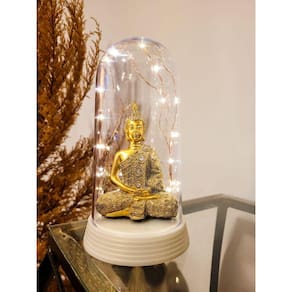 Luminária Abajur Buda Sidarta Namastê Tailandês TibetanoSidarta Gautama, é popularmente chamado simplesmente de Buda ou Buddha, foi um príncipe de uma região no sul do atual Nepal que, tendo renunciado ao trono, se dedicou à busca da erradicação das causas do sofrimento humano e de todos os seres, e desta forma encontrou um caminho até ao despertar ou iluminação.Em sua homenagem, fizemos essa linda luminária, peça artesanal.Produto exclusivo Amor Lindo Boutique.Perfeita para decorar ou presentear.Dimensões:10 cm de diâmetro por 19 cm de altura.Características do Produto:- A estátua de Buda é fabricada em resina de alta qualidade e resistência.- A redoma é de acrílico, com base de plástico de excelente qualidade.- As luzes de fada, são micro luzes de LED, que funcionam com apenas pilhas ou baterias conforme estoque / já inclusas .- A luminária é rica em detalhes. Marca: Amor Lindo Boutique